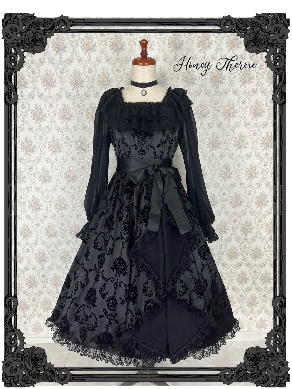 ローズノワールワンピースは、ハニーティアラのお姉さんブランド、ハニーテレーズより発売しましたエレガントで大人っぽいワンピースです。